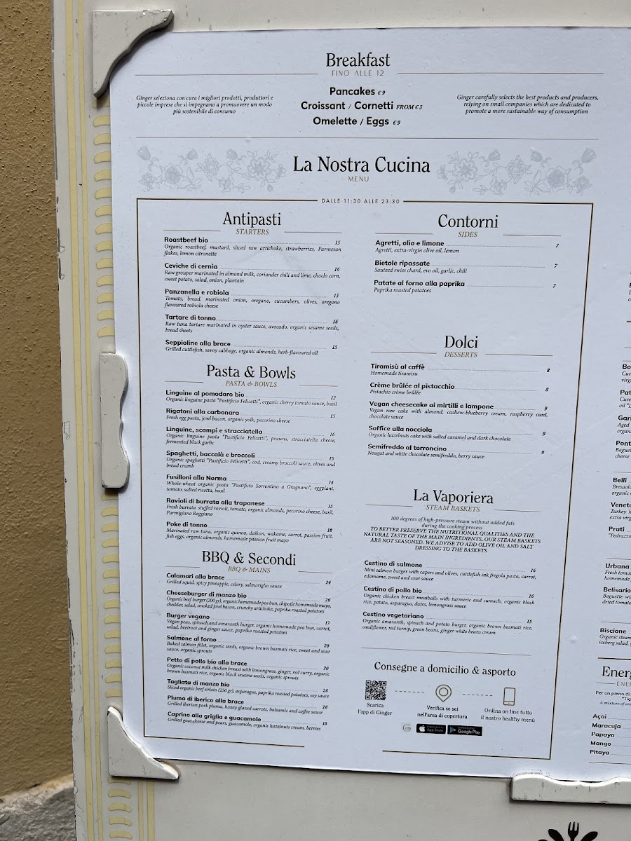 Welcome to Ginger - Spagna, a vibrant culinary gem located just moments away from the iconic Spanish Steps in Rome. This inviting eatery specializes in fresh, delicious meals, catering to both vegetarian and vegan preferences. With a reputation for aldente pasta and signature dishes like succulent Parma prosciutto paired with creamy buffalo mozzarella, every bite is a testament to quality ingredients and thoughtful preparation.